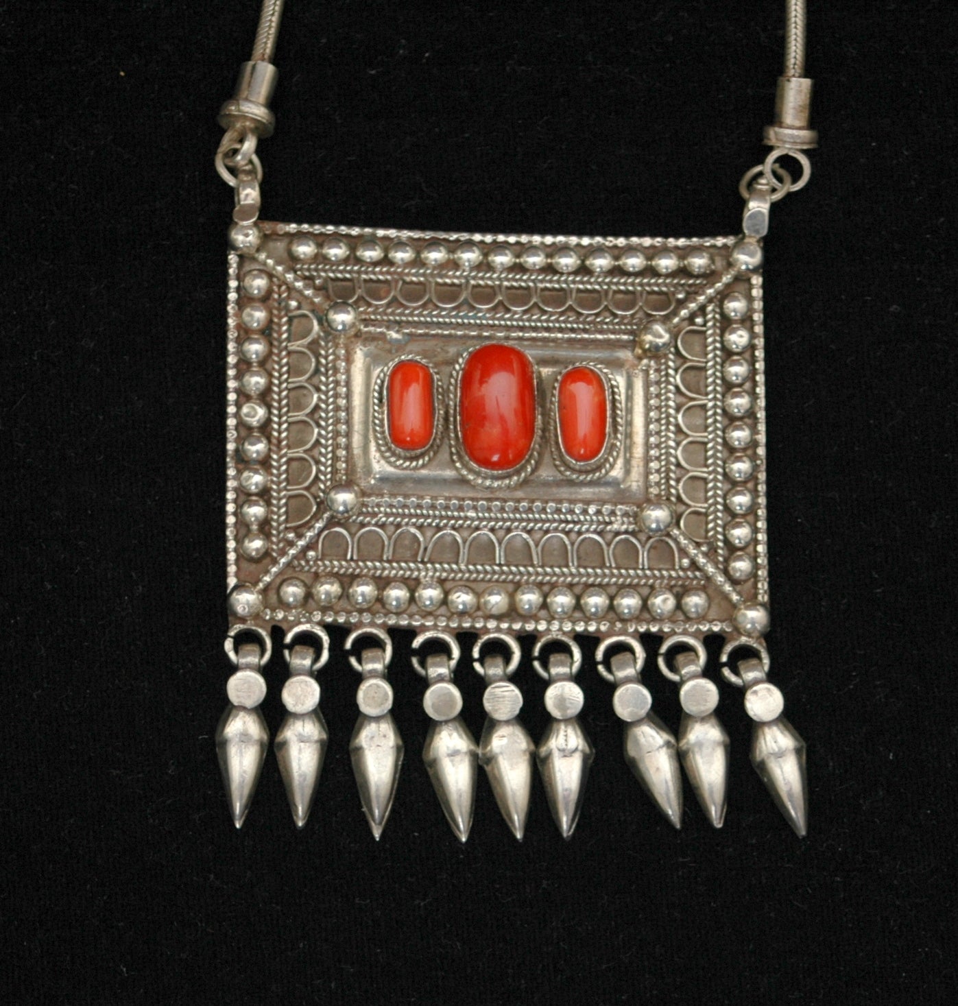 Mooie zilveren hangers met koraal en/of turkoois. De meeste hebben we vanuit Noord-India meegenomen. Sommige zijn zogenaamde gau's Een doosje waarin een heilige spreuk gedaan wordt. Vaak een Tibetaanse mantra.